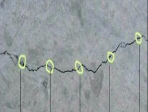 (4)施工过程:找出浴室底部的裂缝,填入水溶性聚氨酯防水材料,除去注浆针,用水封住改性环氧树脂的表面。
